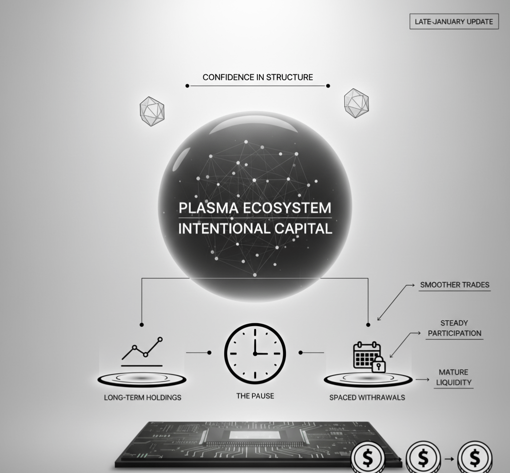 O momento que se destacou para mim não foi um pico ou uma venda. Foi a pausa. A liquidez que antes se movia rapidamente agora está sentada por mais tempo, quase como se estivesse esperando o mercado falar primeiro. Esse detalhe importa agora porque pausas geralmente sinalizam confiança na estrutura em vez de medo da volatilidade. Em todo o ecossistema do plasma, o capital não parece inquieto—parece intencional, e isso muda a forma como devemos ler as condições atuais.