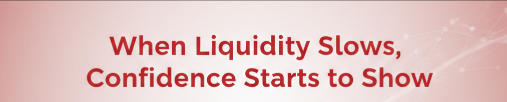 Eu não percebi a liquidez saindo primeiro. Eu notei que ela estava persistindo. As negociações ainda eram liquidadas, os fundos permaneciam financiados, mas a urgência havia desaparecido. Essa desaceleração importa agora porque a liquidez só hesita quando os participantes sentem que o sistema sob eles é estável o suficiente para esperar. No ecossistema vanry, o comportamento do capital parece menos reativo e mais seletivo, o que muda como o estresse aparece muito antes de os preços se moverem.
