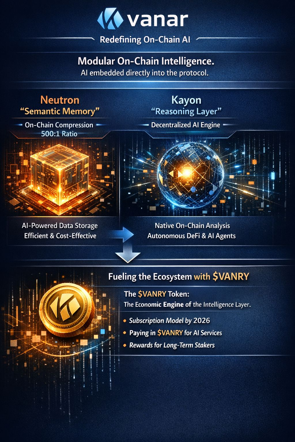 The architecture of @vanar relies on two revolutionary layers that handle data and reasoning with unprecedented efficiency. layer focuses on AI-powered data storage. on-chain compression ratio, Neutron ensures that storing complex data remains both efficient and cost-effective.