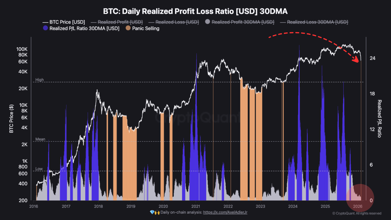 Quando as perdas realizadas superam os lucros e as vendas por pânico se aceleram, estamos testemunhando a capitulação forçada — uma condição que historicamente se esgota em vez de persistir.