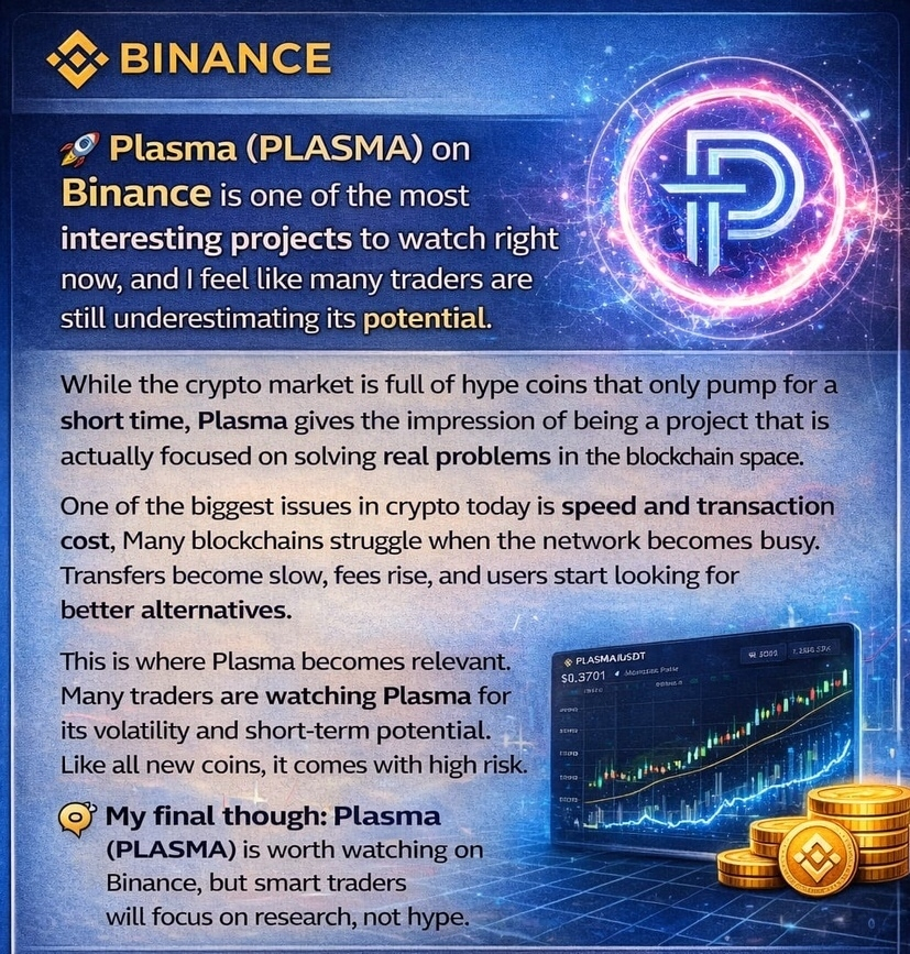 $XPL Plasma (PLASMA) on Binance is one of the most interesting projects to watch right now, and I feel like many traders are still underestimating its potential. While the crypto market is full of hype coins that only pump for a short time, Plasma gives the impression of being a project that is actually focused on solving real problems in the blockchain space.