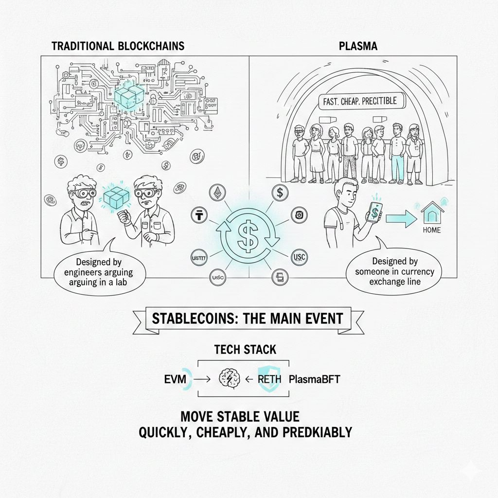 Most blockchains feel like they were designed by engineers arguing in a lab. Plasma feels more like it was designed by someone standing in a currency exchange line behind a migrant worker trying to send $200 home.
