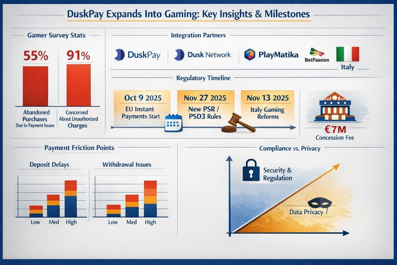 Italy adds another layer of why this particular integration feels current. Legal analysts have described the new remote gaming concessions coming into force on November 13, 2025 as a tightening and reorganization of the market, with more emphasis on operational transparency and responsible gaming. And the economics are serious: Italy’s remote gambling regime has been widely reported as involving a €7 million concession fee per website/concession under the newer framework, which is the kind of number that makes operators care deeply about payments reliability and audit trails.