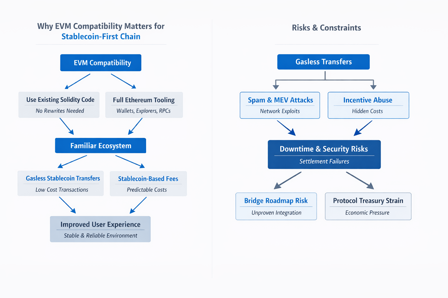 The deeper question is what EVM compatibility enables that is uniquely dangerous in a stablecoin first environment. The obvious upside is composability: you can bring AMMs, lending markets, payment routers, and stablecoin yield strategies into the same execution space. The obvious risk is that composability also imports failure modes. If you make stablecoin transfers “feel free,” you can attract spam, abusive MEV patterns, and incentive games that push costs somewhere else, often onto validators, relayers, or the protocol treasury. And when payments are the headline, downtime and reorg anxiety hit harder, because nobody shrugs off a failed settlement the way they shrug off a failed meme coin mint.