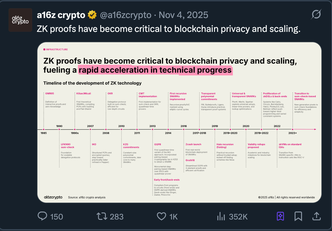 结合验证区块而无需重新执行所有内容的 ZK 证明,同步时间大幅下降,存储变得可管理。运行节点从「仅限基础设施公司」转回「体面的笔记本电脑领域」。