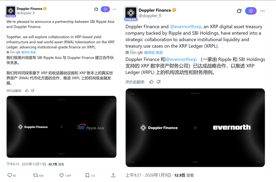 A Doppler, de dezembro de 2025 a janeiro de 2026, colaborará com a SBI Ripple Asia e a Evernorth.