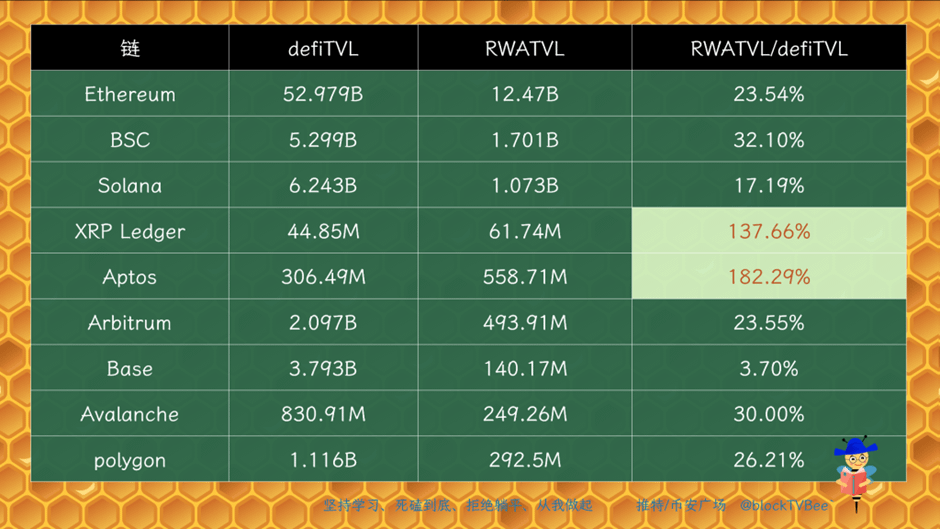 Comparando com algumas cadeias de ecossistema de RWA de alto TVL, o XRPL é uma das duas únicas cadeias onde o TVL de RWA supera o TVL de defi.