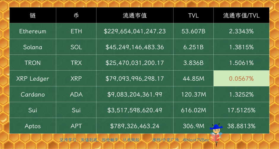 Mesmo sem comparação com cadeias compatíveis com EVM como Ethereum e BSC, e sem comparação com a próspera cadeia Solana do ecossistema MEME, apenas em comparação com Cardano (ADA), a participação do TVL do ecossistema XRP Ledger é muito baixa.