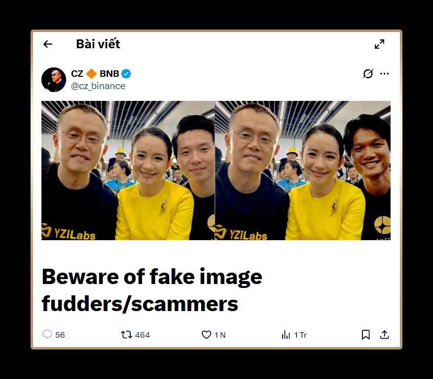 CZ đã phát hiện và công khai vạch trần một chiến dịch misinformation (thông tin sai lệch) có tổ chức. Ngày 4/2/2026, ông phát hiện tài khoản "Wei 威 BNB" với 863,000 follower sử dụng ảnh AI-generated để giả mạo người ủng hộ rồi đăng nội dung chỉ trích.