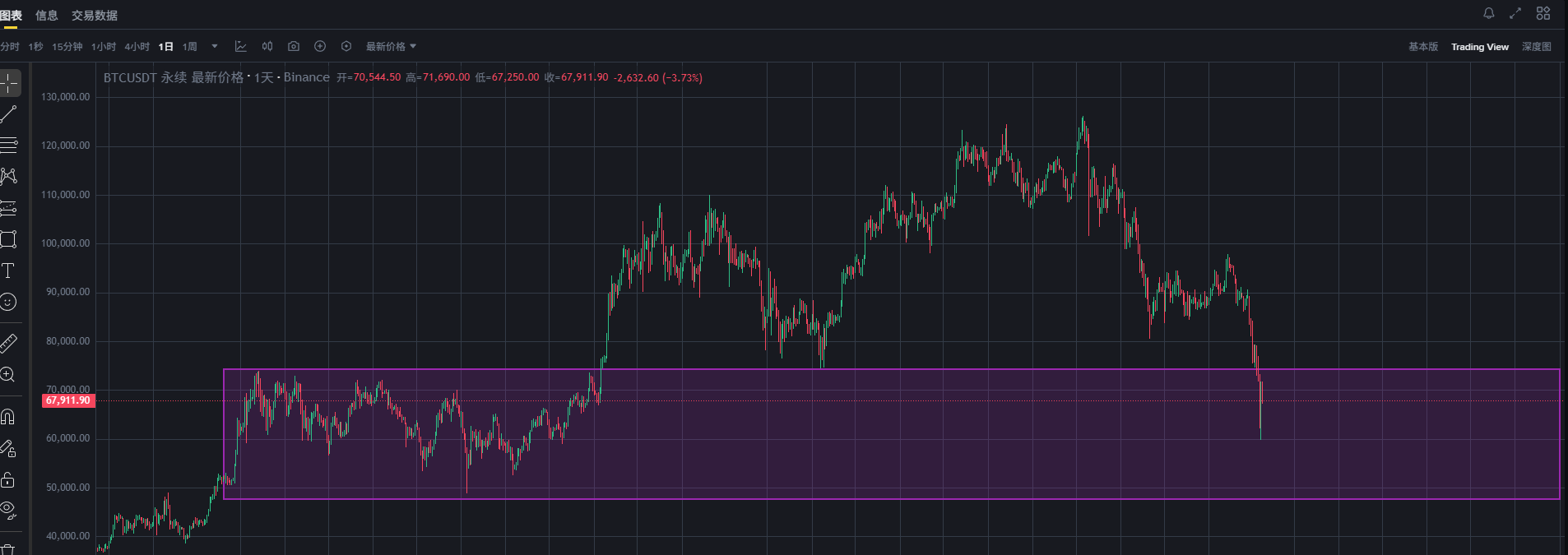2. 谨慎情景(概率较高):当前反弹更多是技术性修复和空头回补。在宏观政策收紧和资金外流的大背景下,市场缺乏持续上涨的动能。预计价格将在6.3万-7.5万美元(BTC)和1800-2200美元(ETH)之间进行高波动震荡,甚至可能再次下探测试6万美元支撑。