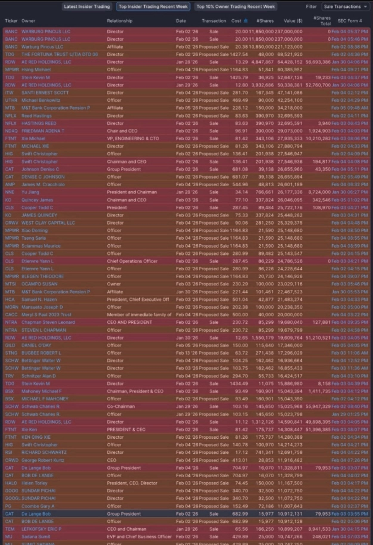Entre as 200 transações de insiders mais importantes esta semana, houve apenas vendas.
