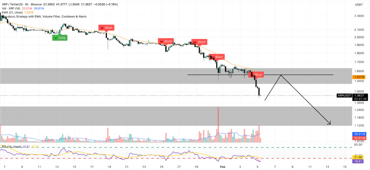 Ripple está enfrentando uma situação difícil no mercado. O ativo já perdeu o suporte chave de $1,50. Além disso, a taxa de financiamento do ativo está diminuindo para o ponto mais baixo desde outubro. Isso indica uma pressão de venda severa sobre o ativo. Os indicadores técnicos de curto prazo do ativo estão mostrando muitos sinais de venda técnica, o que indica que o ativo provavelmente alcançará a marca de $1,15.