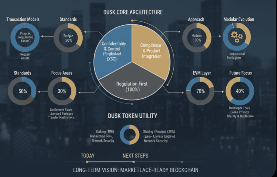 Dusk não parece interessado em competir por atenção da mesma forma que muitos projetos fazem. Em vez disso, está tentando resolver um problema específico e difícil: como trazer finanças para a cadeia sem forçar cada participante a revelar seu negócio publicamente.