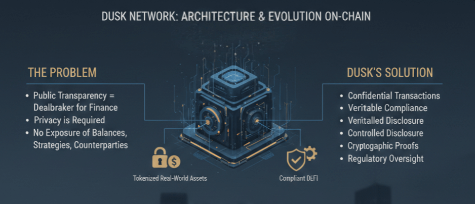 Dusk foi construído com essa realidade em mente. A rede se concentra em criar infraestrutura financeira onde transações e posições permanecem confidenciais, ainda permitindo verificação e supervisão regulatória quando necessário. Esse equilíbrio entre privacidade e conformidade está no centro do design do projeto. Em vez de esconder tudo, o objetivo é a divulgação controlada apoiada por provas e regras criptográficas, que é exatamente o que os mercados regulados exigem.