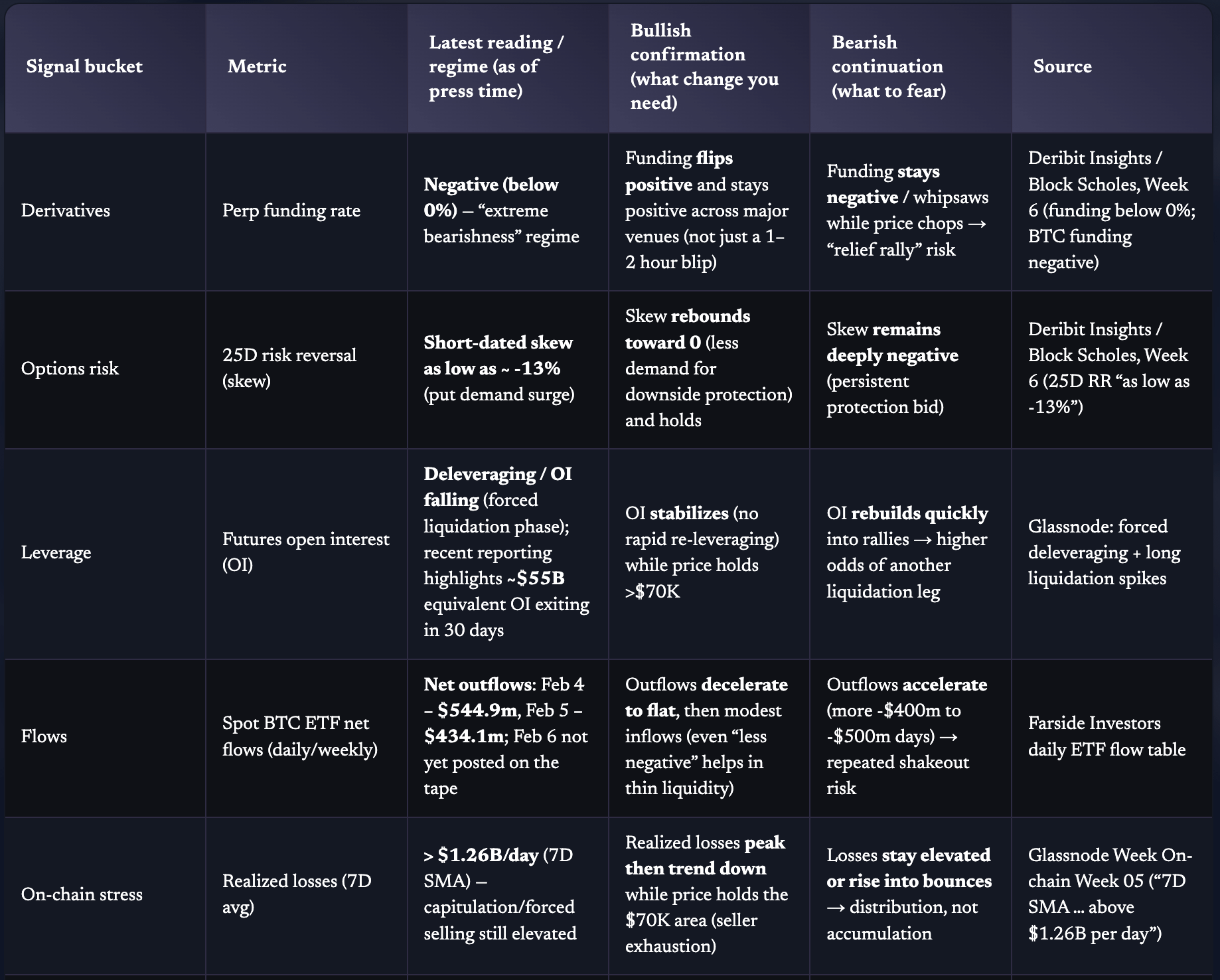 Manter-se acima de $70.000 sugeriria que o cluster absorveu oferta suficiente para estabilizar a ação do preço, pelo menos temporariamente. No entanto, manter exige mais do que suporte técnico. Exige que a demanda spot retorne enquanto a cobertura de derivativos se desfaça e os fluxos institucionais se estabilizem.