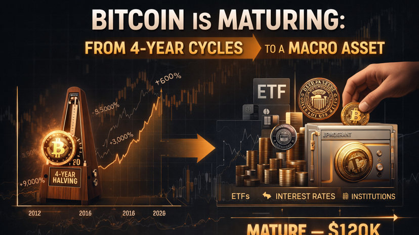 O mercado de 2026 não é mais impulsionado principalmente por eventos de Halving, mas por liquidez macro e dinheiro institucional (ETFs, fundos, bancos).