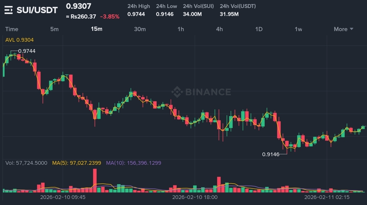 $SUI está atualmente negociando perto de $0.9308, mostrando recuperação de curto prazo após tocar a mínima de 24h em $0.9146. O mercado testou anteriormente a máxima de 24h em $0.9744, confirmando forte volatilidade intradia.