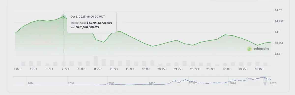 Capitalização de mercado cripto acumulada em outubro de 2025 | Fonte: Coingecko