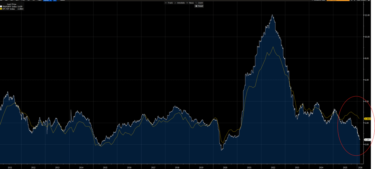 Reagindo, o recurso de negociação The Kobeissi Letter observou que a inflação do CPI agora está em mínimas de vários anos.