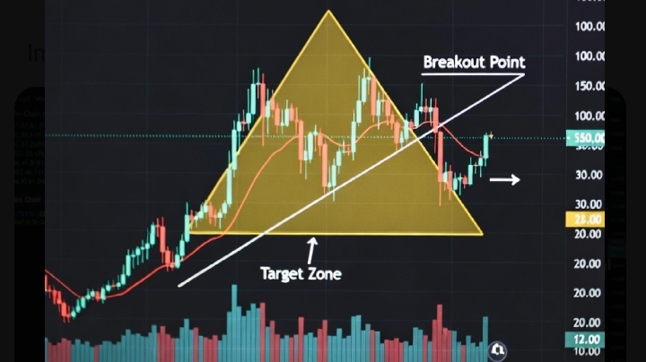 Exemplos recentes (final de 2025 – início de 2026) mostraram ETH em triângulos simétricos apertados perto das zonas de $2,500–$2,700, com analistas observando $3,400–$4,000+ se rompido, respaldado por alta atividade on-chain.