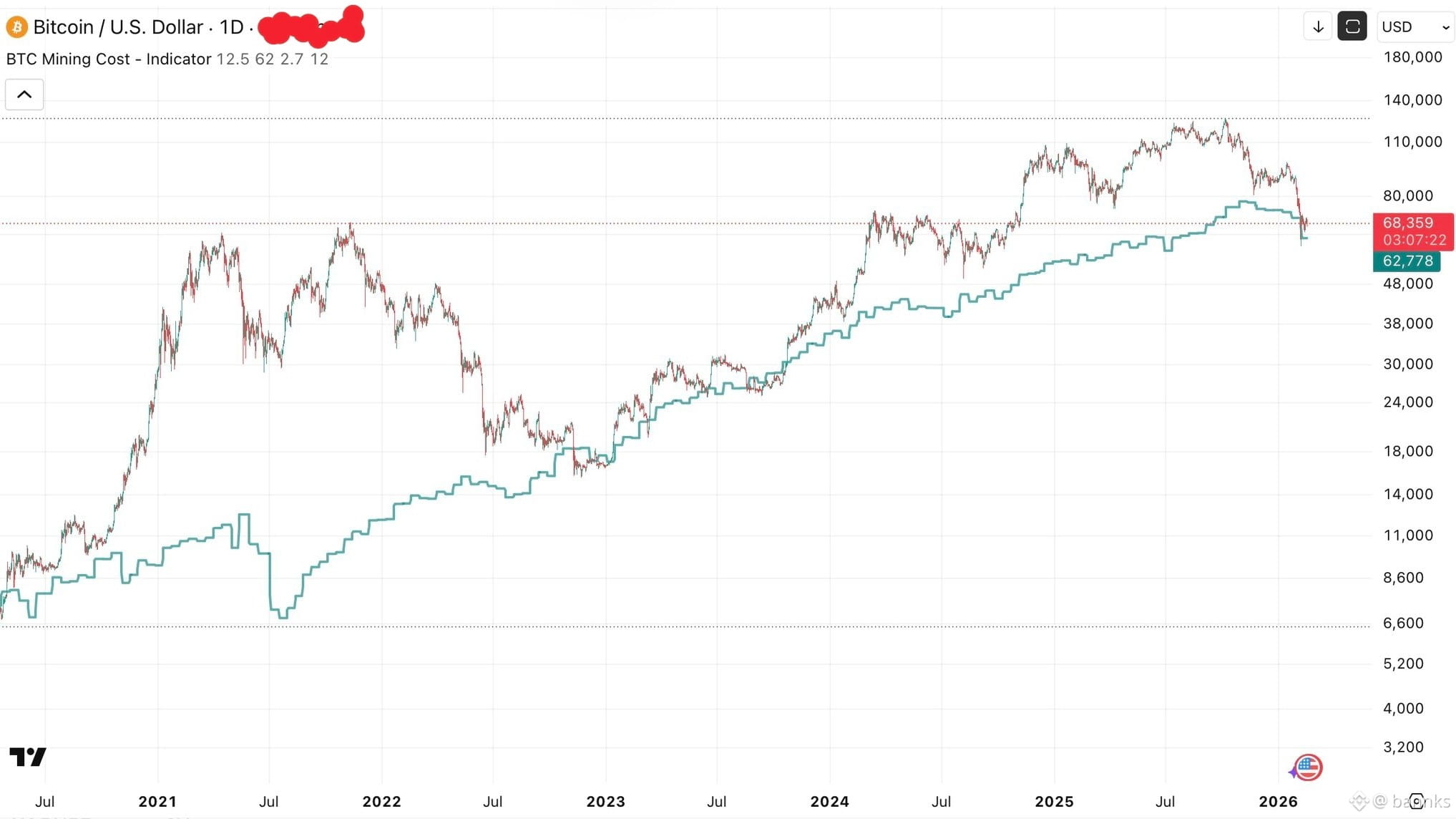 Se $BTC negociar abaixo do custo de produção por muito tempo, mineradores mais fracos desistem.