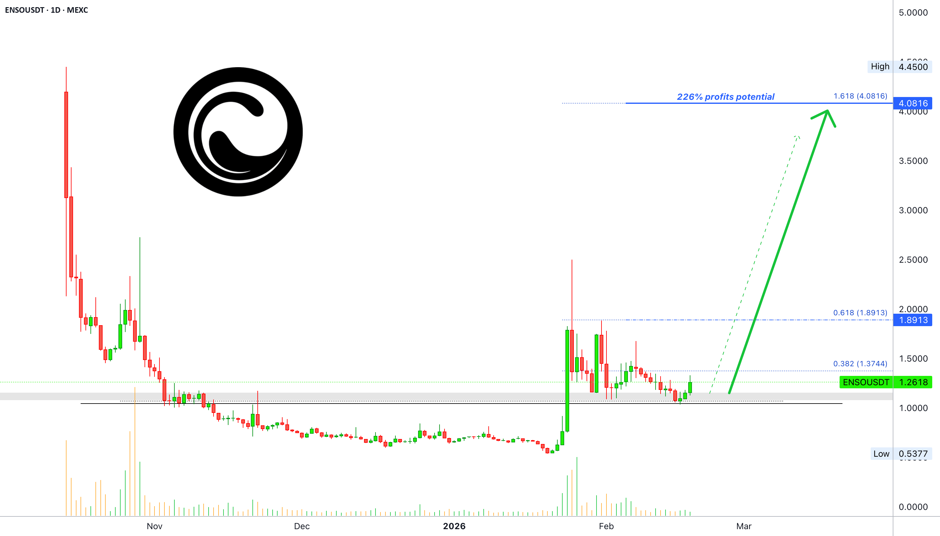 Enso shows a lack of bearish trend, in this case it ended around late November 2025. Then it went sideways and the bullish breakout last month reveals the bulls entered the market. Now we are in higher low territory and this further reveals what comes next.