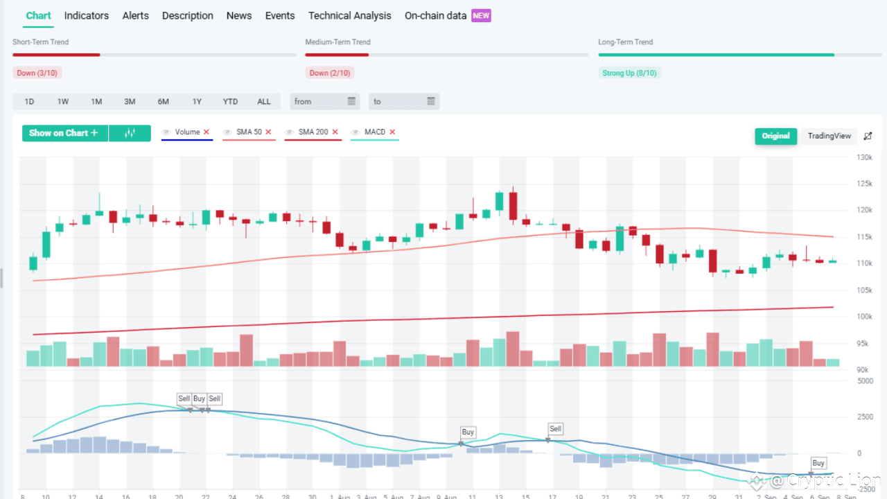 O volume tem sido inconsistente, com picos mais altos durante as vendas em comparação com as recuperações. Esse desequilíbrio sinaliza que os ursos ainda mantêm algum controle no curto prazo. A menos que o volume de compra retorne com força, o BTC pode permanecer preso na zona de consolidação de $108.000–$115.000. Um rompimento convincente acima de $115.000 com volume mudaria fortemente o sentimento para alta novamente.