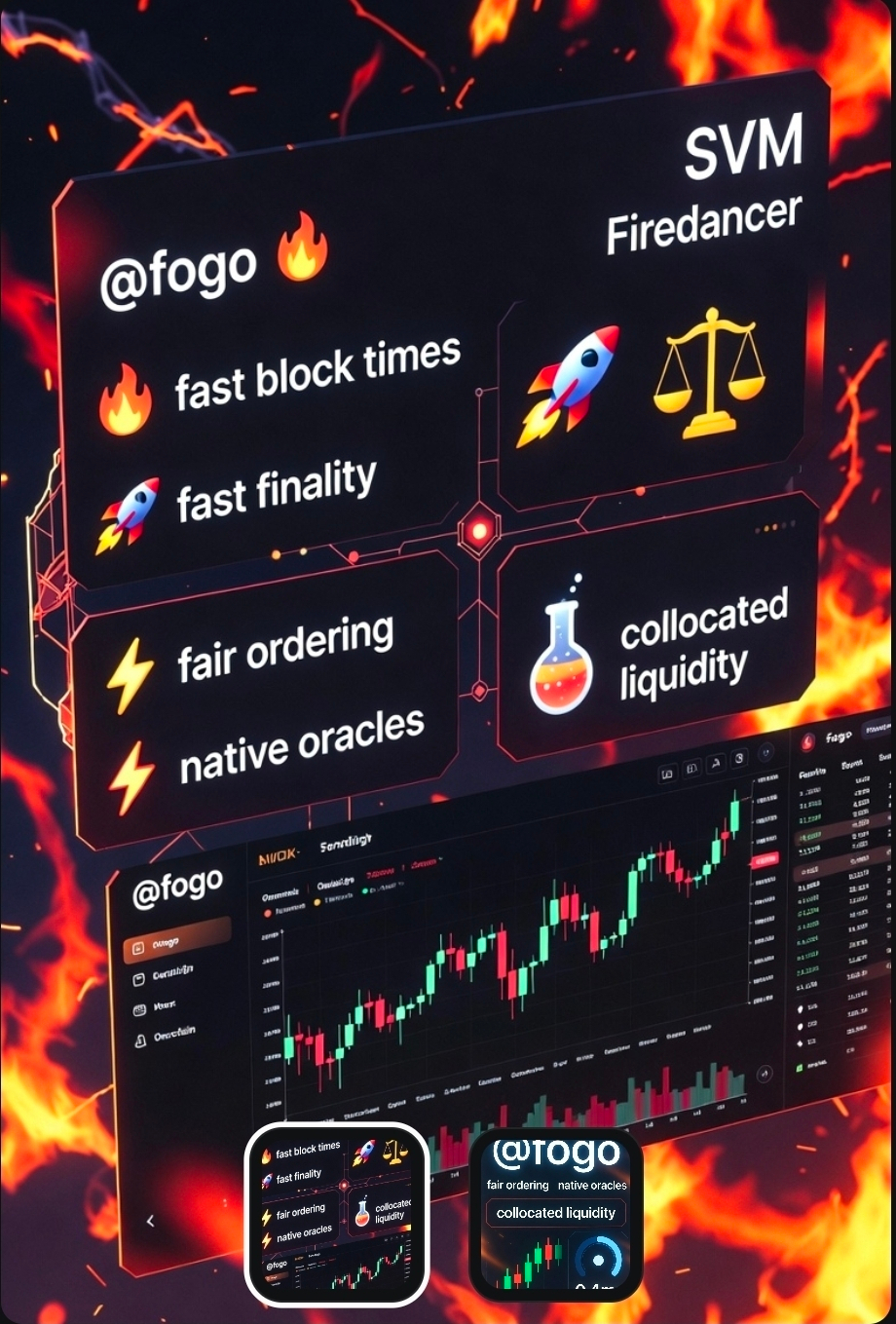Okay, let's cut the fluff: most chains promise "fast" but deliver lag when it counts. @fogo actually delivers. Built on SVM + pure Firedancer, ~40ms blocks, 1.3s finality—up to 18x faster than some big names in high load. It's made for real trading (ex-Wall Street team), with fair ordering, native oracles, collocated liquidity to kill slippage.