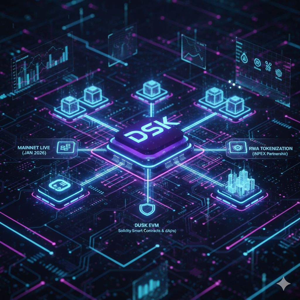 Dusk ne apna Mainnet officially January 7, 2026 ko launch kar diya hai. 6 saal ki mehnat ke baad ab ye ek mukammal Layer-1 blockchain ban chuka hai jo blocks ko instant finality (bohot tezi) ke saath process karta hai.