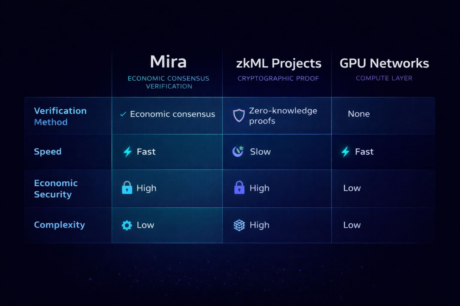 Mira’s differentiation lies in social-economic consensus rather than cryptographic proof alone. That makes it lighter-weight, but potentially more incentive-sensitive.