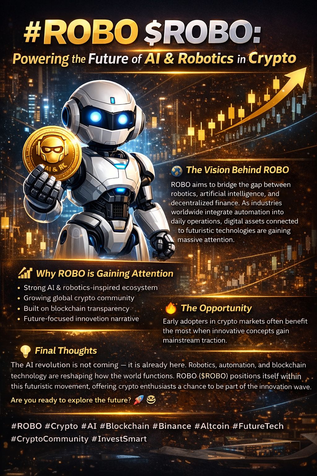 The AI revolution is not coming — it is already here. Robotics, automation, and blockchain technology are reshaping how the world functions. ROBO ($ROBO) positions itself within this futuristic movement, offering crypto enthusiasts a chance to be part of the innovation wave.