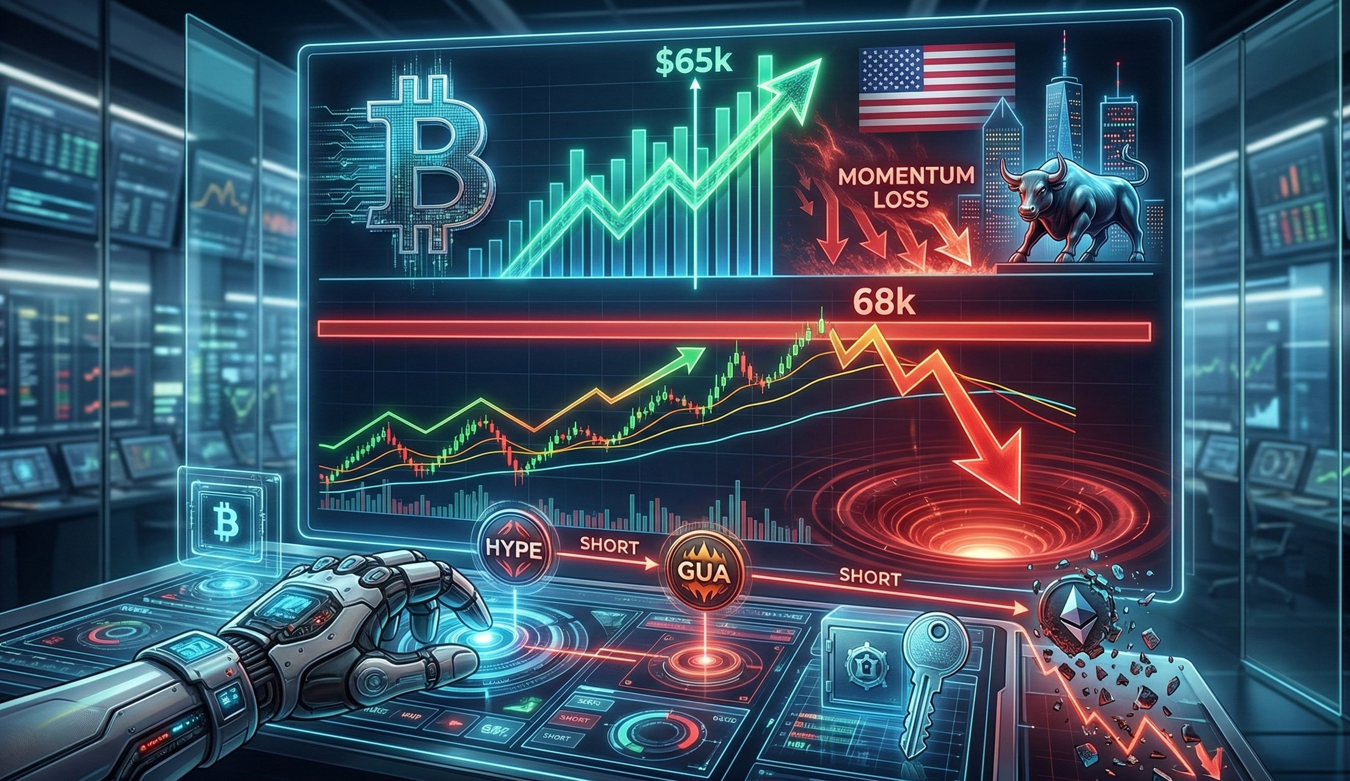 La résistance majeure se situe actuellement à 68 000 $. À mon avis, la pression acheteuse ne suffira pas à valider ce niveau en clôture quotidienne. Je m'attends donc à un rejet et à une correction saine à partir de cette zone de prix.