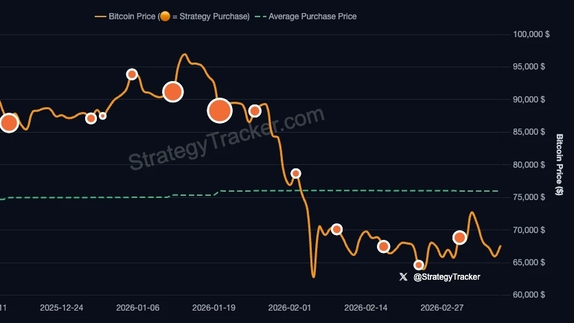 No passado, durante períodos semelhantes de preço abaixo do custo em torno de 2022-2023, a Strategy normalmente evitava compras maiores, completando um total de 28,560 BTC em sete compras menores.