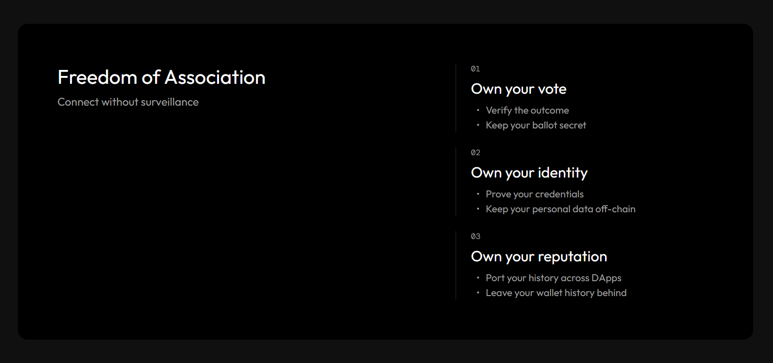 Vote without exposing your ballot. Prove your credentials without putting your resume on-chain. Build a reputation across #dApps without dragging your entire wallet history with you.
