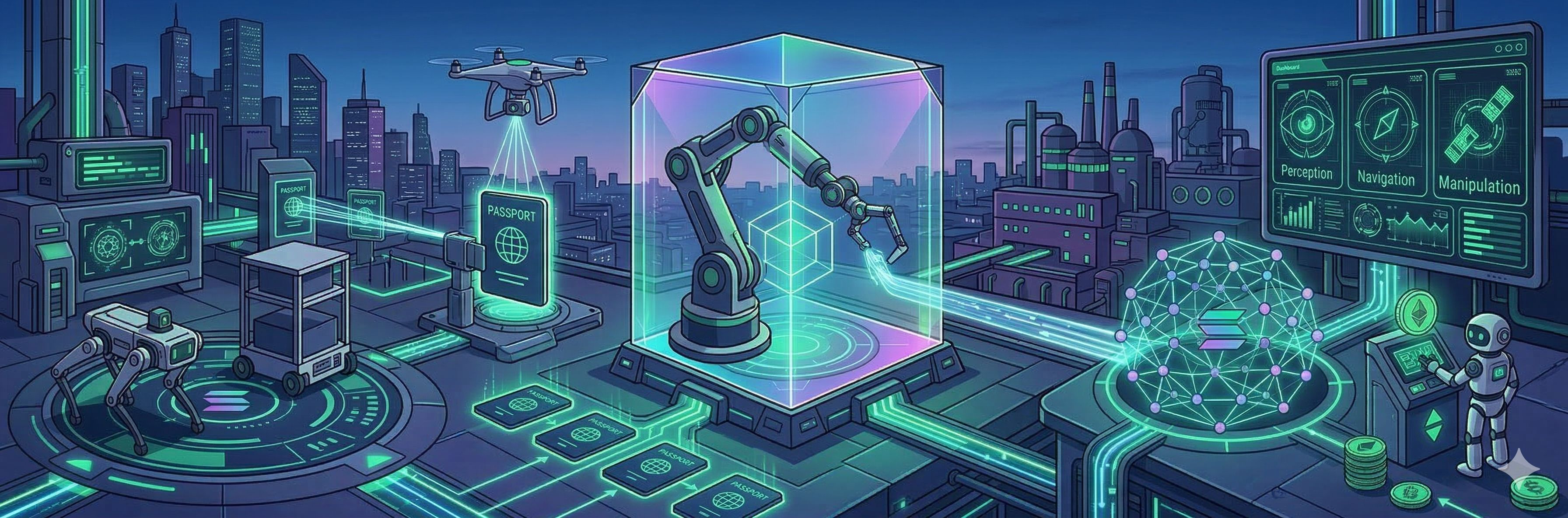 Robôs e agentes usam o token para acessar serviços como verificação, registro de identidade e coordenação computacional.