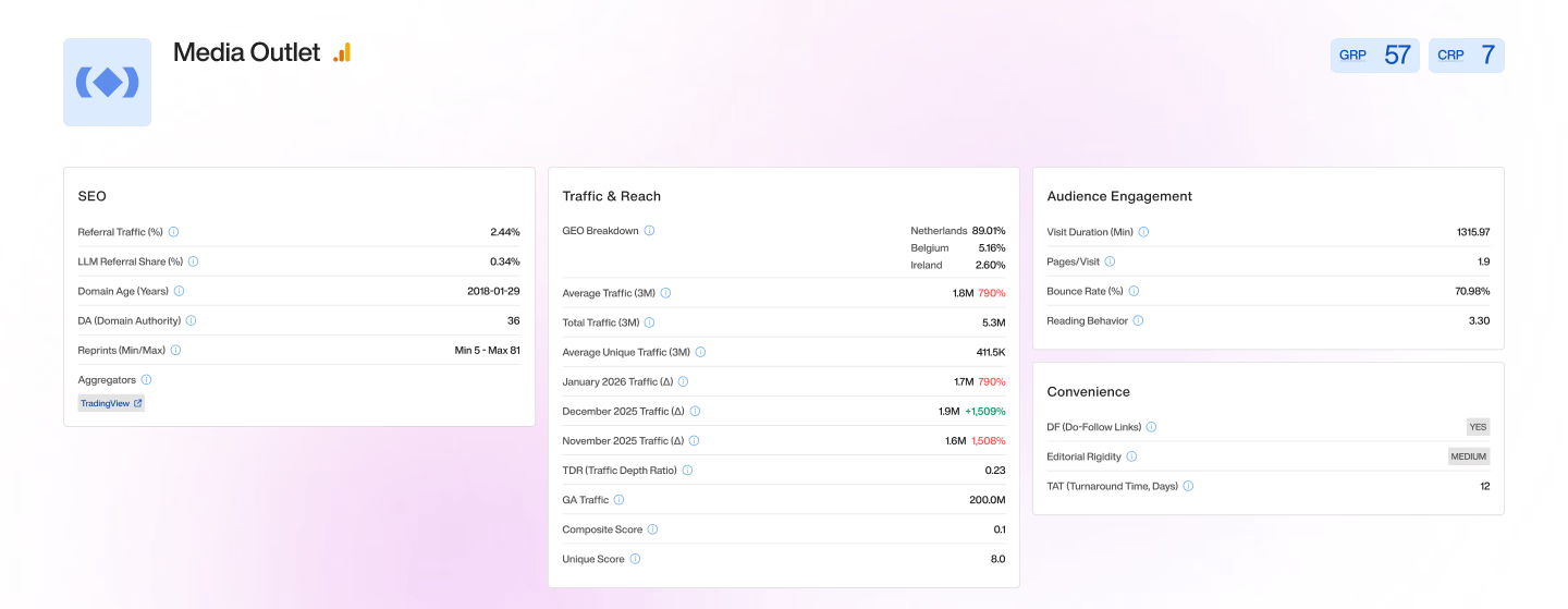One of them, the General Score, reflects how strongly a publication performs overall based on signals such as audience reach, visibility and consistency over time. The other is called the Convenience Score, and it looks at what it is actually like to work with that media. It takes into account how strict editorial teams tend to be, how quickly they respond and how collaboration with them usually unfolds.