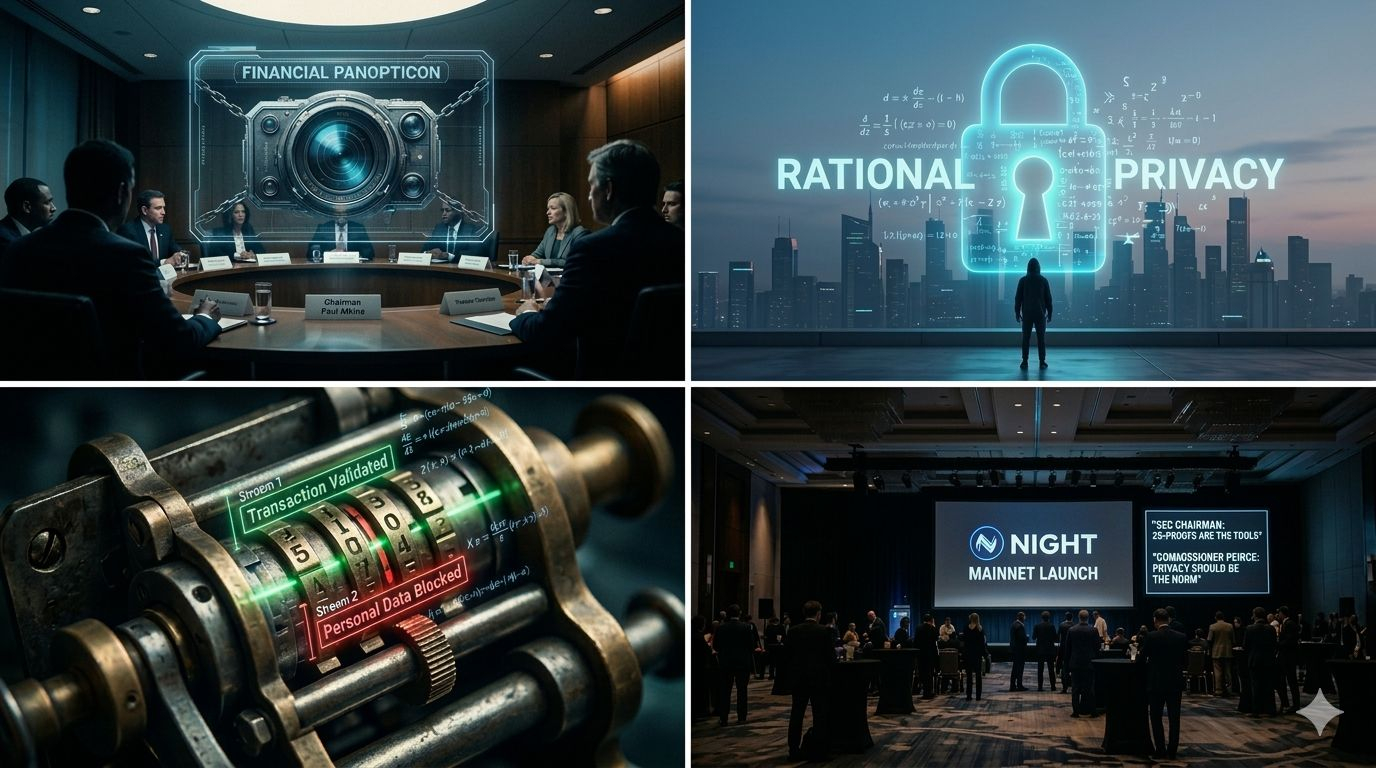 Em dezembro de 2025, o chefe da SEC alertou que as criptomoedas corriam o risco de se tornarem um panóptico financeiro — e disse que provas de conhecimento zero e divulgação seletiva eram as ferramentas necessárias para evitar esse resultado. Em março de 2026, a Midnight Network lançou uma mainnet construída inteiramente em torno dessas ferramentas.