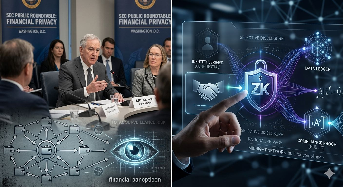 A mesa-redonda de dezembro de 2025 representa algo significativamente diferente. O Presidente da SEC esteve em Washington e argumentou que a tecnologia de privacidade — especificamente as provas ZK e a divulgação seletiva — deveria ser abraçada como ferramentas que reduzem a necessidade de vigilância em massa, não resistidas como ferramentas que possibilitam a má conduta.