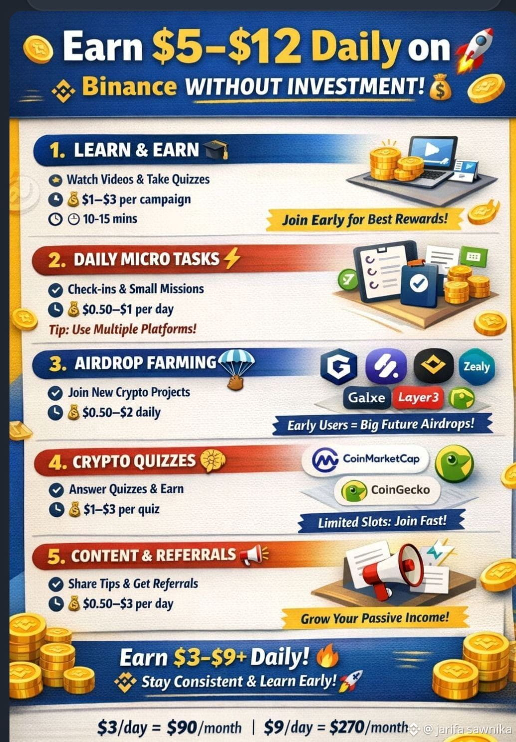🔥 Zero-Capital Crypto Strategy: How Beginners Can Earn $5–$12 Daily on Binance Without Investing
