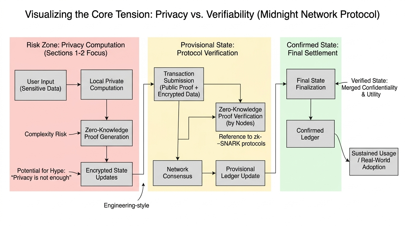 A Midnight Network não está apenas se posicionando como uma cadeia privada. Está tentando criar um sistema onde as transações podem permanecer confidenciais enquanto ainda são provavelmente corretas.
