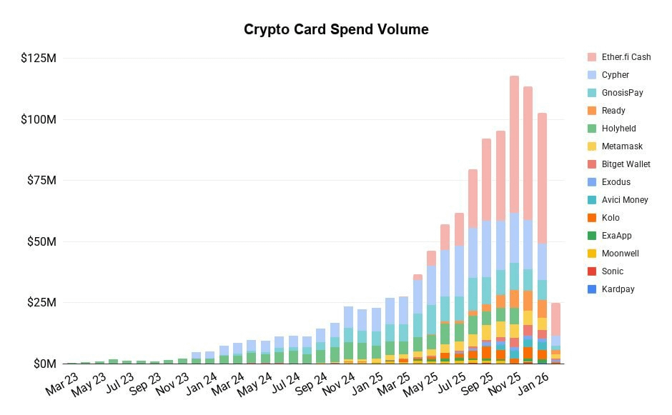 A couple of years ago, crypto cards were mostly a niche experiment. Today, monthly spend pushing past $100M tells a very different story. This isn’t hype-driven activity — it’s usage.