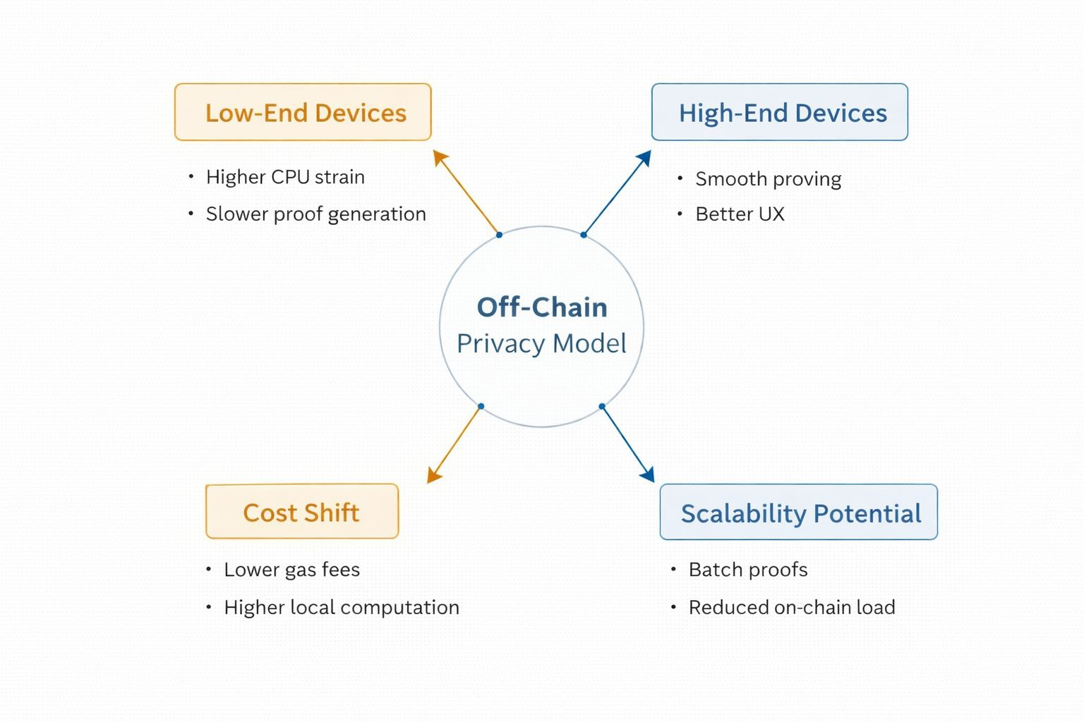 What Midnight is doing is pushing most of the computation off-chain. Which means your device or wherever the proving happens is doing the heavy work. And proof generation isn’t exactly light. If you're on a decent machine, maybe it’s fine. But on a low-end laptop or phone, I can already see it struggling. So yes, you save on gas, but you’re paying with CPU instead.