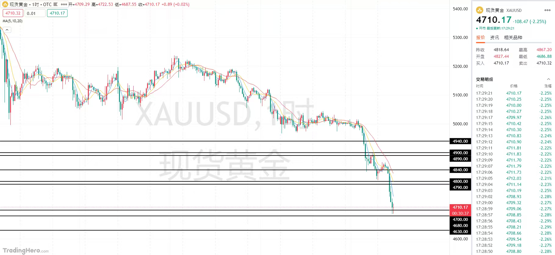 技术面从黄金日线来看,黄金上周已经形成均线空头信号,价格跌破均线带之后,本周初震荡过程中也多次给出做空机会。目前行情已经跌到4700附近,如果短期基本面没有明显利好,下方还有机会测试4700附近支撑。短线上方重点关注5日线4840附近压力,只要站不回去,黄金整体依旧保持弱势下跌格局。