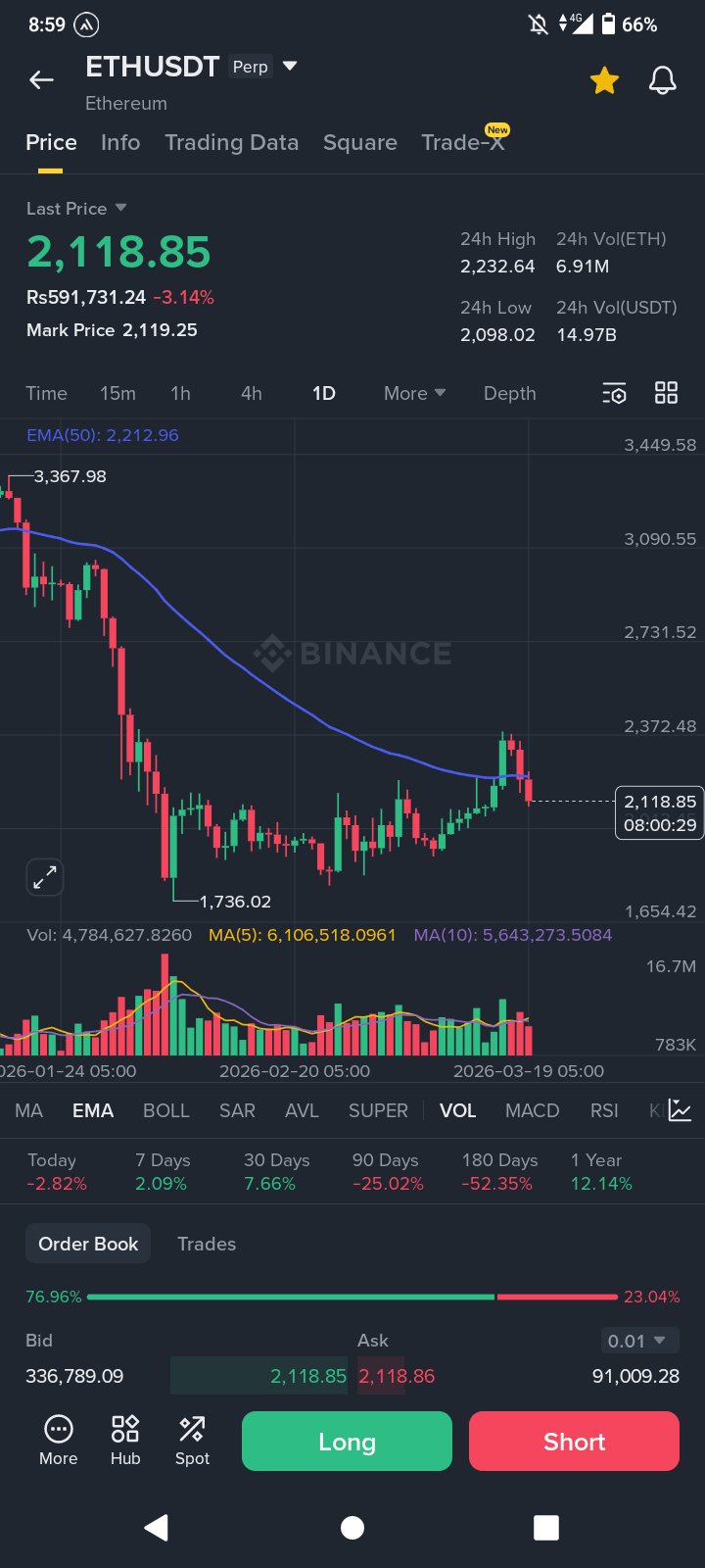 Ethereum (ETH) is currently sitting at a critical psychological and technical zone near $2,100, and the market is sending mixed signals.