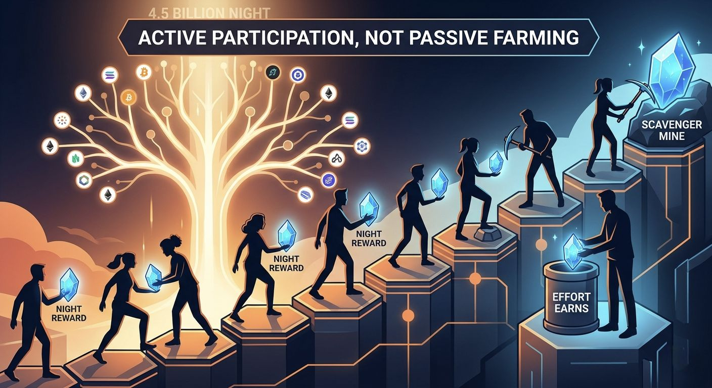 Mas aqui é onde fica bom. Scavenger Mine não foi apenas um airdrop de “clique aqui, ganhe dinheiro grátis”. Você teve que participar. Completar ações. Ganhar suas recompensas. Esse tipo de coisa realmente incentiva o engajamento. Agricultura passiva? Esqueça. As pessoas não falam o suficiente sobre isso, mas como você projeta recompensas de tokens literalmente molda a cultura do usuário. Se você recompensar a preguiça, você recebe aproveitadores. Se você recompensar o esforço, você obtém usuários reais. Faz sentido, certo?