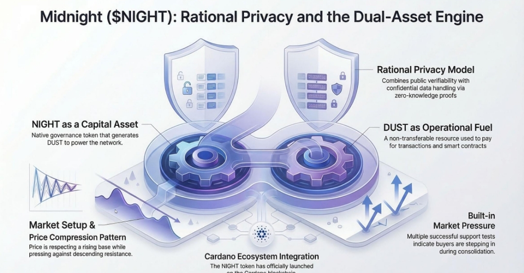 My analysis: compared with a lot of new listings, NIGHT at least has a clearer utility story. Binance Academy describes NIGHT as a public token that generates DUST, and Midnight adds that DUST is renewable, non-transferable, and designed to power transactions without forcing users to spend their principal NIGHT holdings.