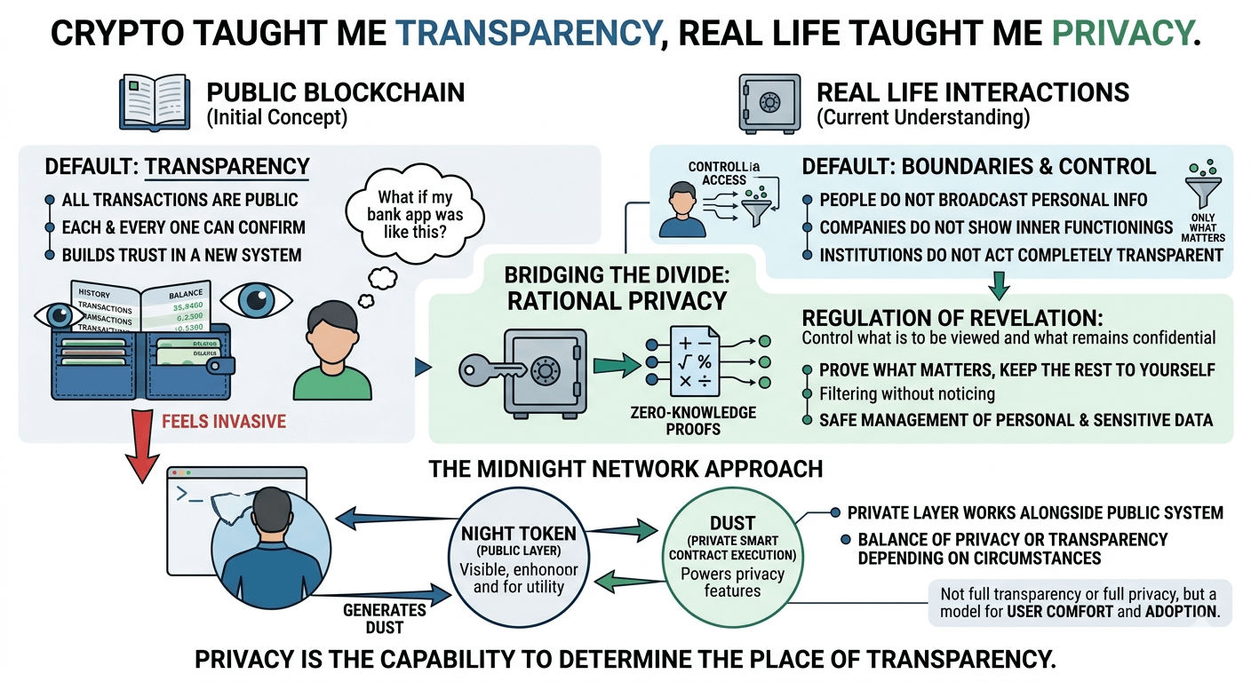 Not only visible to me, but also to anyone. Every payment I made. Every transfer. All trends in my spending or saving. It was not some melodramatic thought, it was a silent perception. That sort of exposure would not be empowering. It would feel invasive. And that’s when it clicked. We have been describing transparency as an aspect in crypto but in the real world, it would be a weakness.