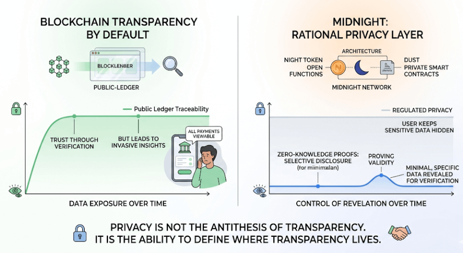The concept of rational privacy on part of Midnight began to gain grounds. It does not involve secrecy of data. It has to do with the regulation of the revelation. Zero knowledge proofs can be used by the system to verify that something is true without revealing the underlying information on it. It is technical in sound and also the concept is simple. You prove what matters. You keep the rest to yourself.