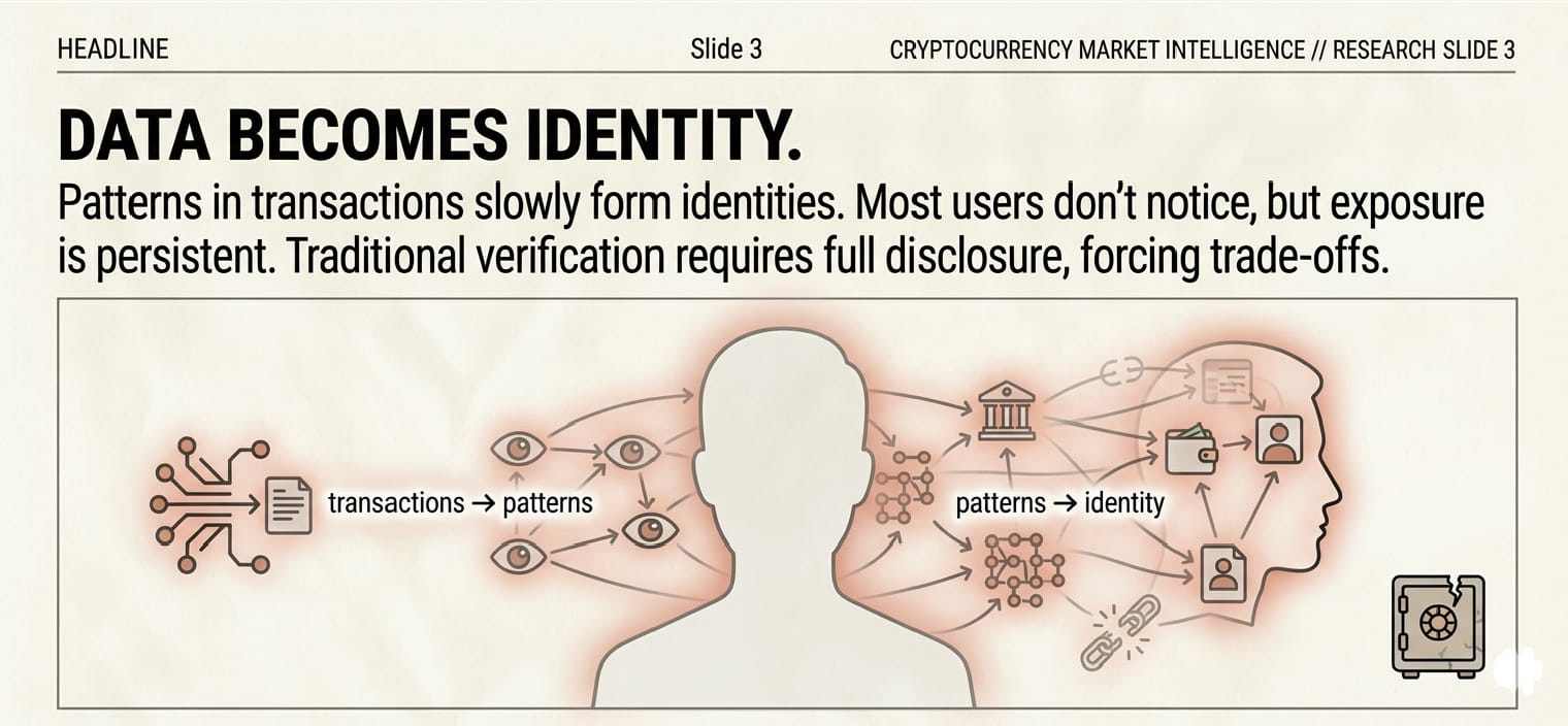 These days, if you’re browsing blockchain ecosystems, you see it’s a systemic problem. Transparency is baked in—over 90% of on-chain data is out in the open, based on multiple independent studies. On one hand, this kind of openness builds trust. Anyone can check transactions, balances, contracts—you name it. But there’s always more to the story. Patterns start emerging: wallet behavior, when you send transactions, how often you do it, and how you interact with others. This stuff piles up into something that’s basically an identity—not just random data. Most people don’t realize they’re leaving a traceable trail.