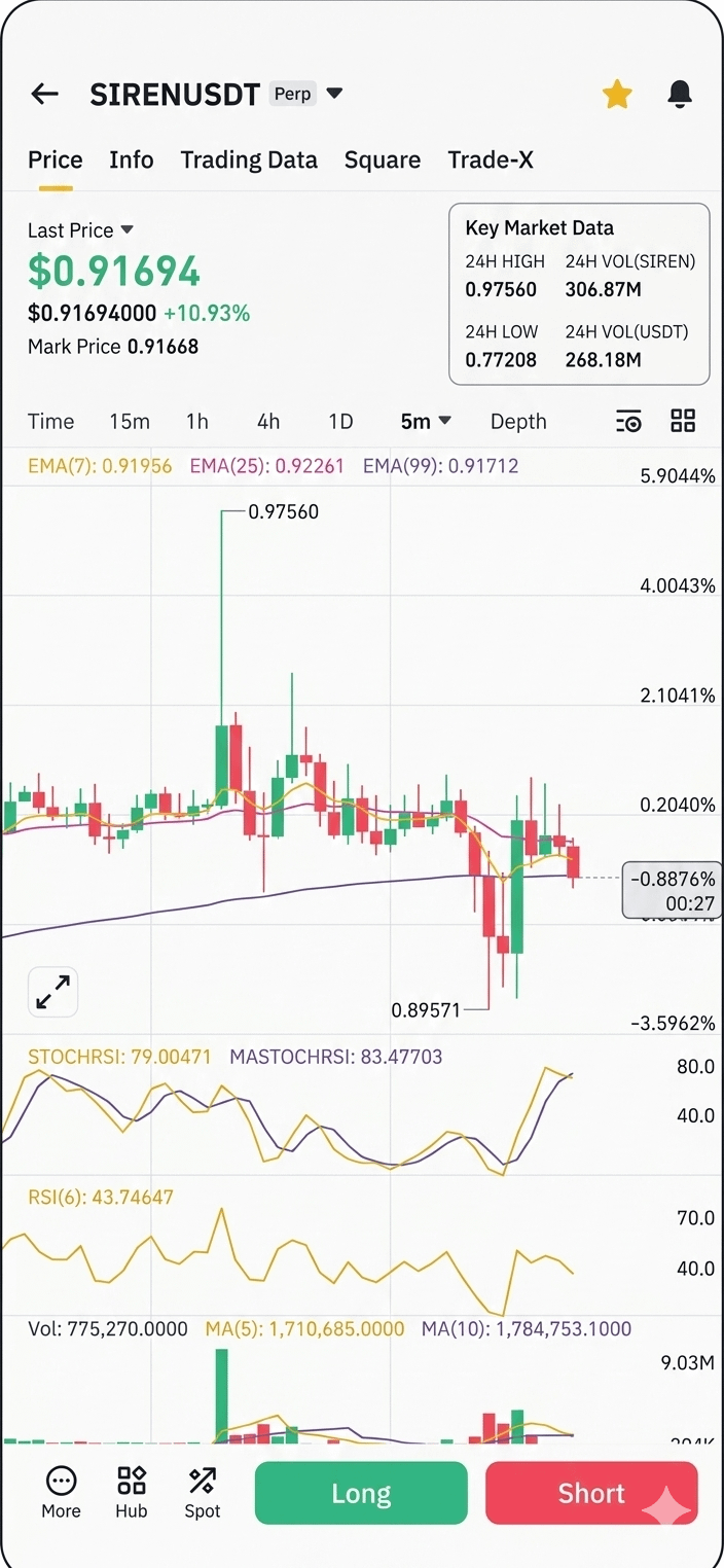 Trading perpetuals involves high risk, especially with low-cap AI/Meme coins like SIREN which are prone to "liquidity squeezes" (liquidating short sellers before a real drop).